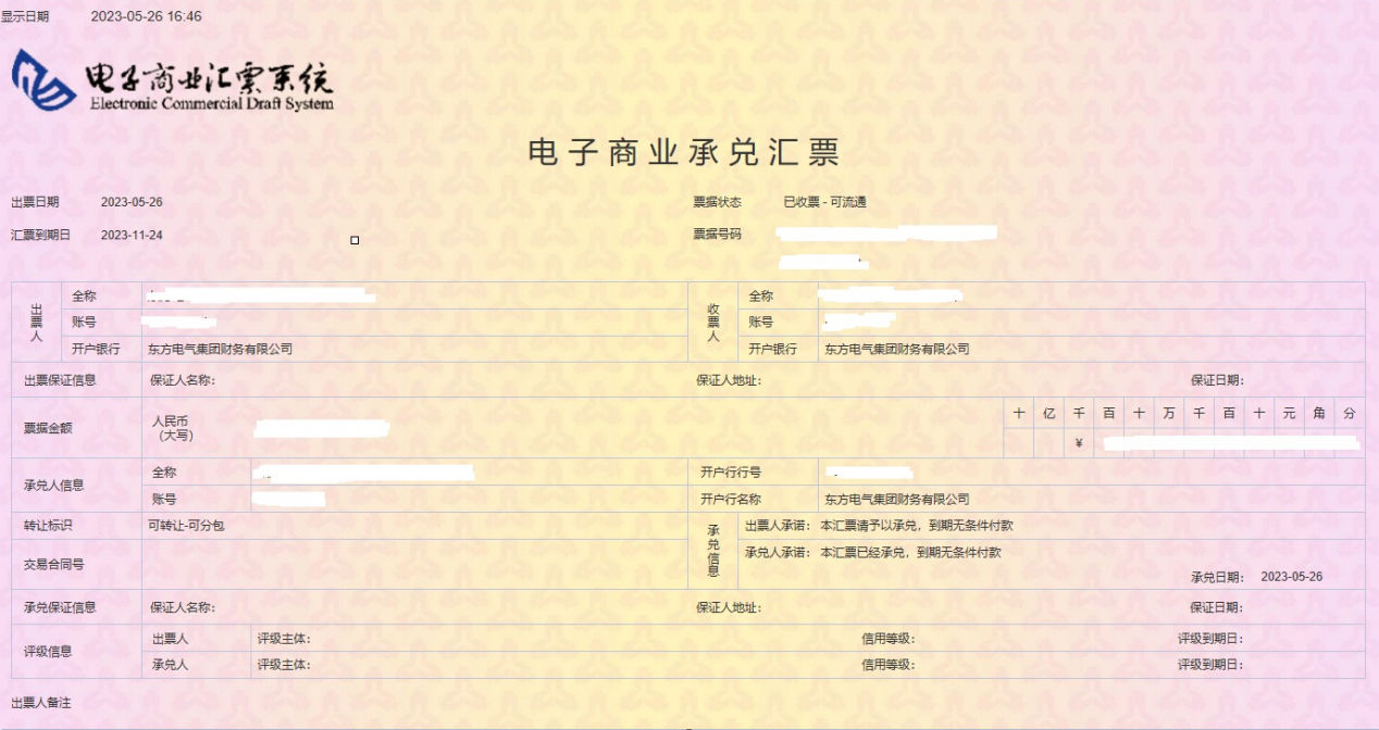 继2023年4月22日新一代票据管理系统成功上线后,5月26日,壹号娱乐-com - NG大舞台,有梦你就来财务新一代票据管理系统成功支持成员企业开出首张电票。